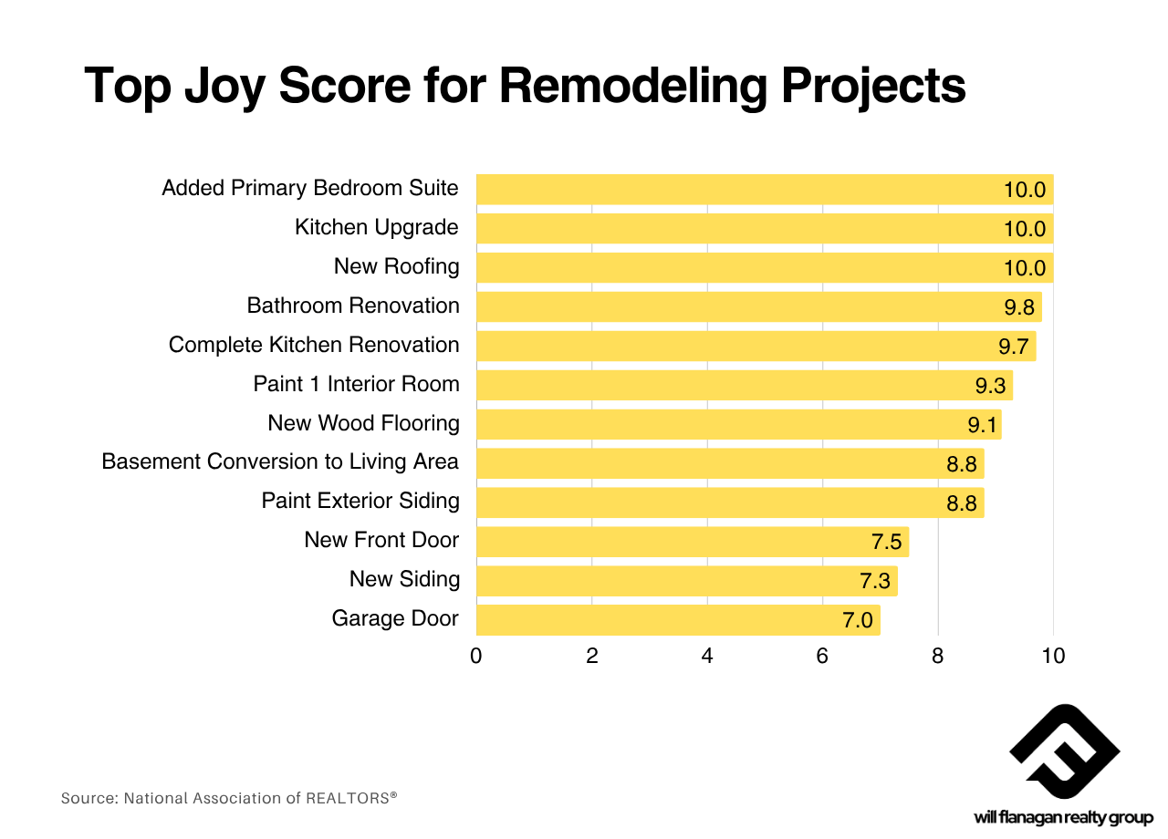 Return on investment is important, but don’t underestimate the emotional return of a remodel. That’s where the Joy Score comes in: a 1-to-10 rating based on how happy homeowners felt after completing their projects.